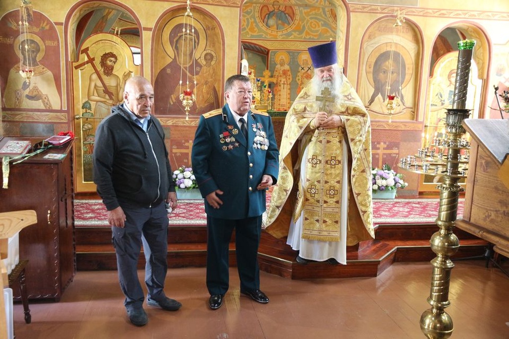 Ветераны-танкисты, участники боевых действий в Афганистане и других «горячих точках» приехали в Никольский храм с.Лямцино и за общим богослужением вместе со своим духовником протоиереем Александром Трушиным и прихожанами храма молились о российском воинстве.