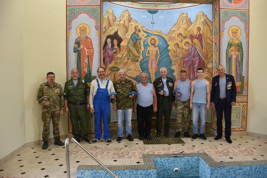 По окончании Божественной литургии настоятель храма протоиерей Александр Трушин встречал гостей, среди которых были не только ветераны-десантники и воспитанников дружины св. Владимира Храброго, под руководством Литвинова Е.П. Отец Александр для гостей провел экскурсию по приходскому музею «Церковь и Армия. Союз во имя жизни». После экскурсии, все желающие окунулись в освященную купель.