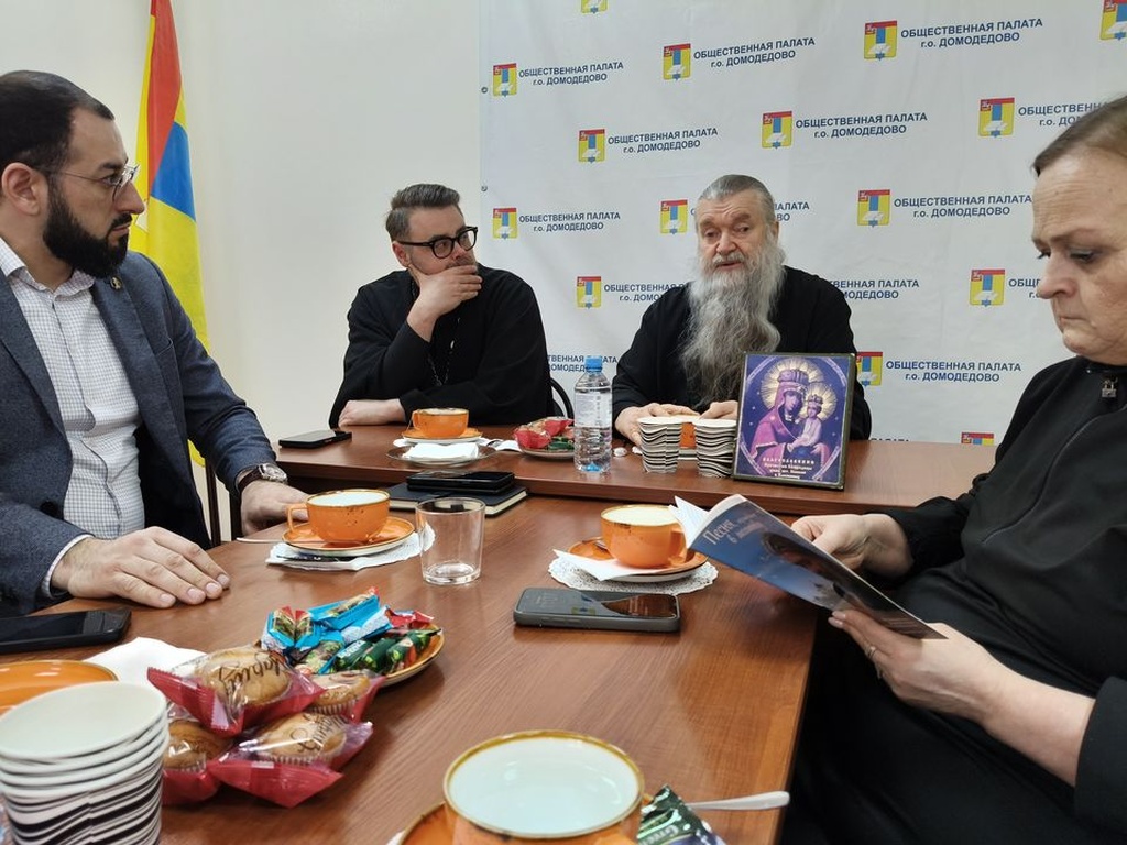 18 февраля настоятель нашего храма протоиерей Александр Трушин был приглашен в Общественную палату г.о.Домодедово, где провел беседу о Духовных Подвижниках нашего времени, рассказав о жизни и служении Богу иеросхимонаха Симона (в миру Онегина Гаджикасимова, известного поэта-песенника).