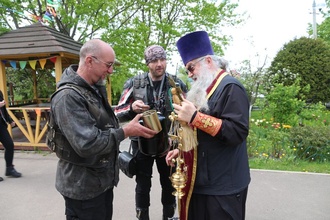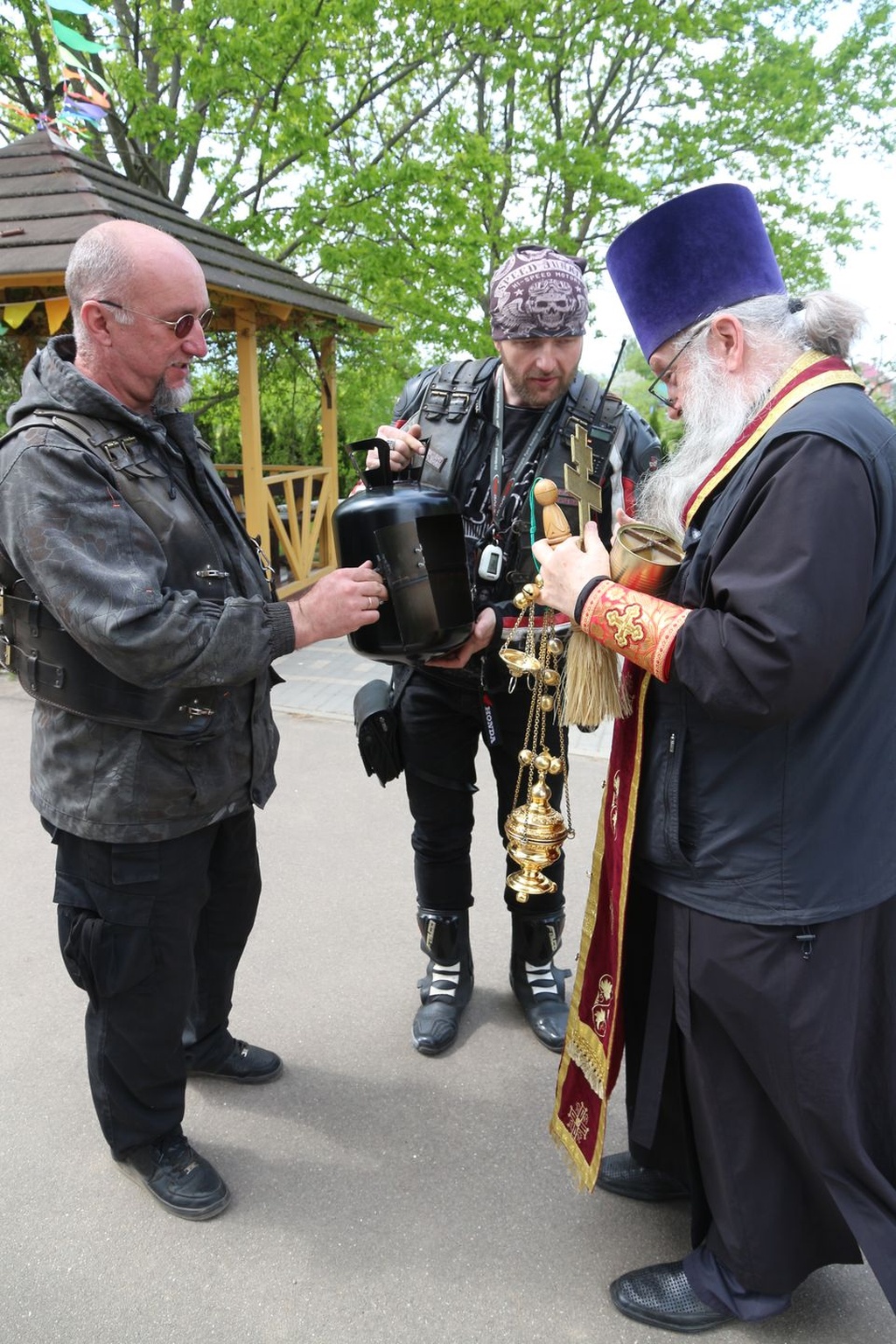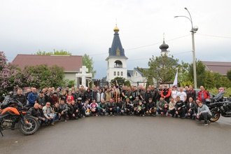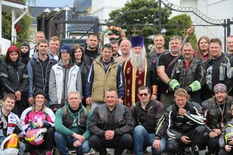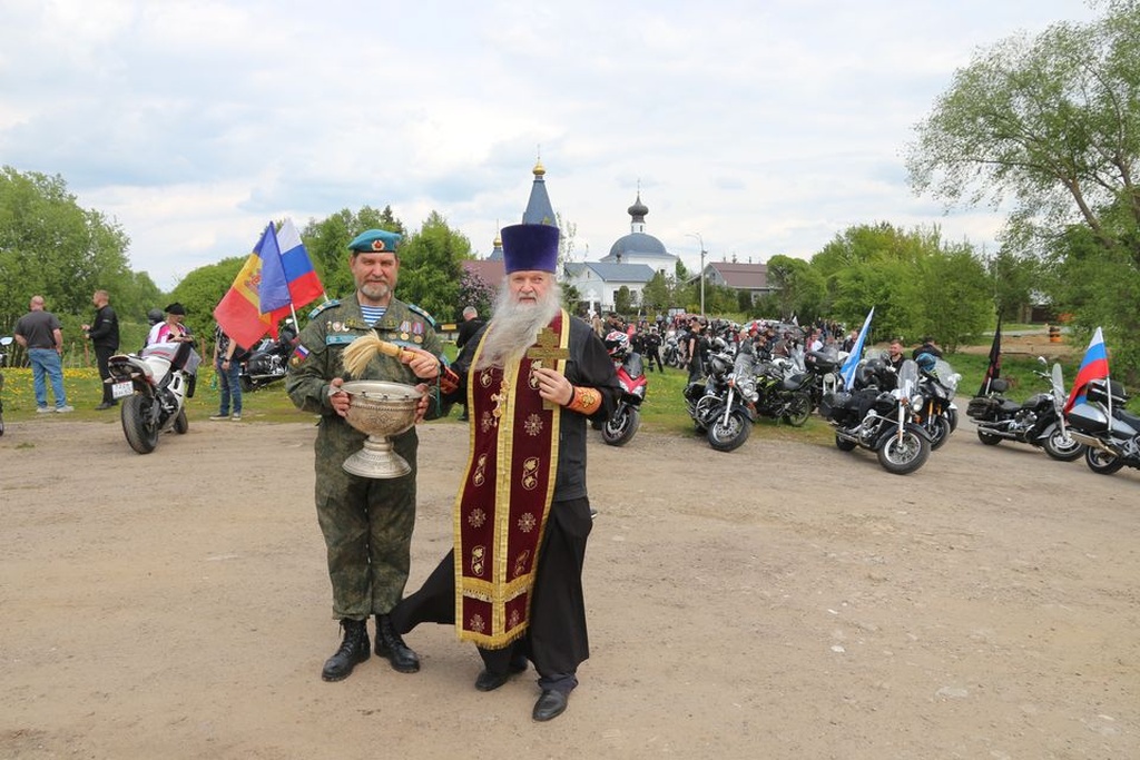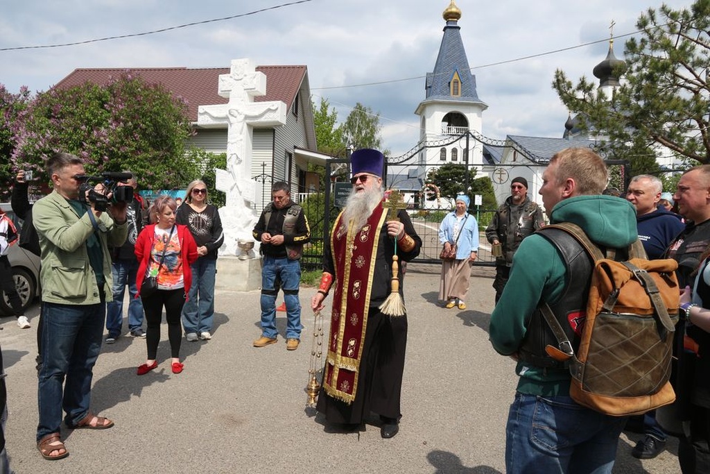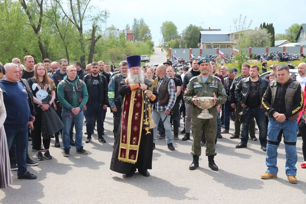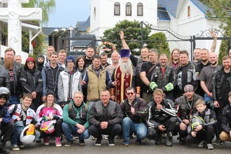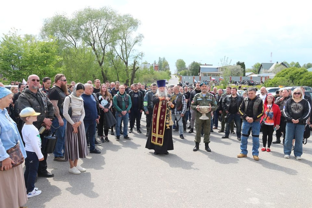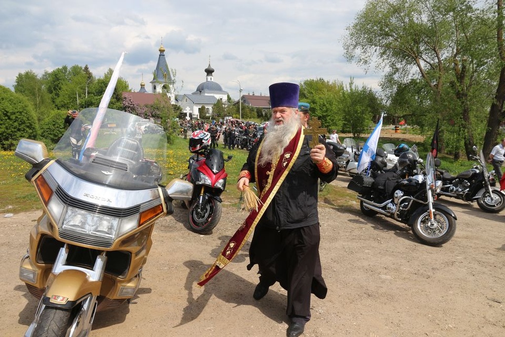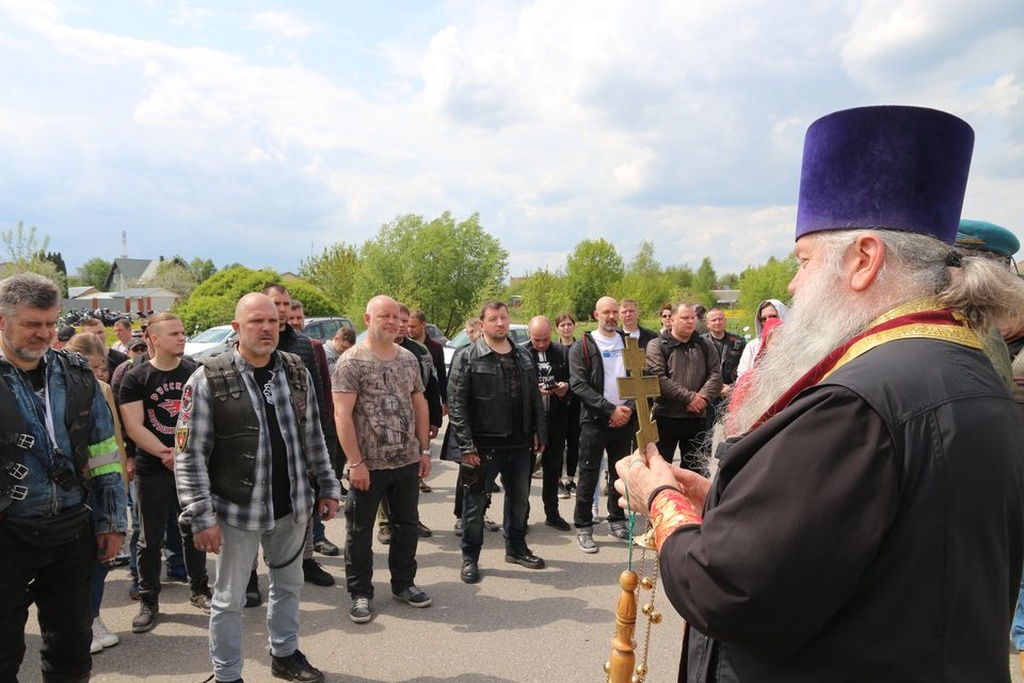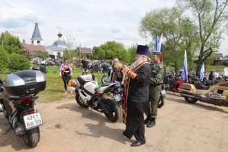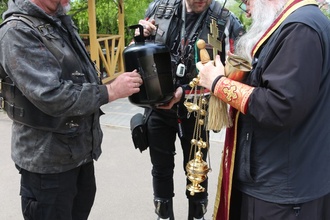 Настоятель Никольского храма с.Лямцино протоиерей Александр Трушин отслужил молебен, благословил мотоциклистов, обратился со словами напутствия, и, пройдя через колонну, окропил святой водой мотоциклы.