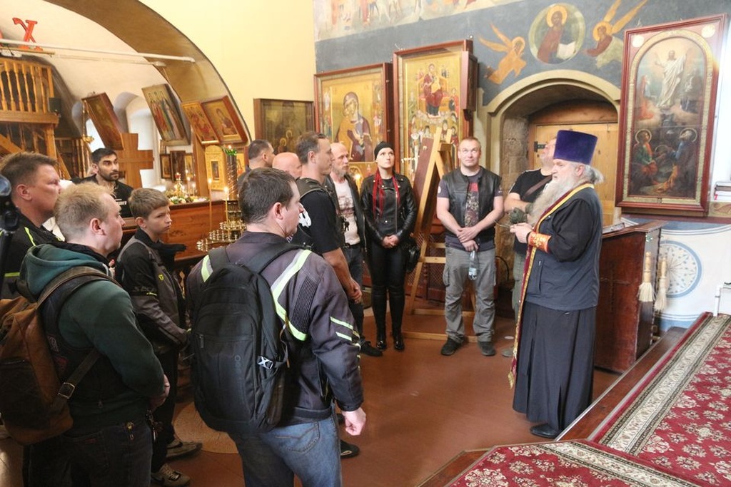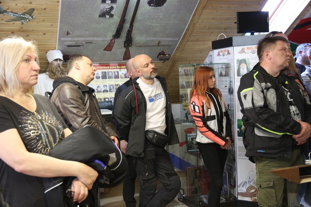 Для гостей были организованы экскурсии по Никольскому храму и приходскому музею «Церковь и Армия. Союз во имя жизни». Мотоциклисты, сменяя друг друга, с большим интересом познакомились с древней историей храма и экспозицией музея, соприкоснувшись с темой многовекового содружества Православной Церкви и Русского воинства. После чего мотоколонна продолжила свой путь по местам боевой славы.