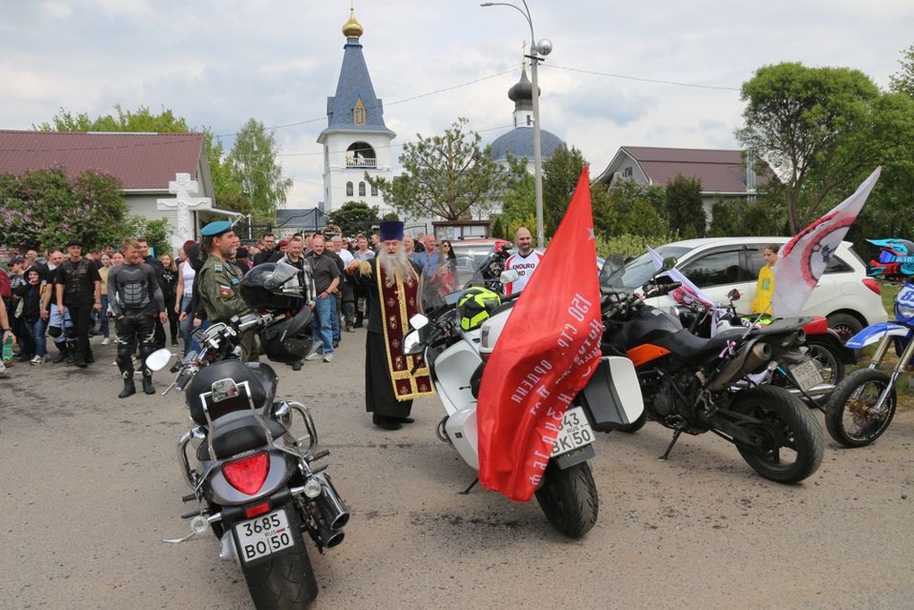17 мая в г.о.Домодедово состоялось открытие мотосезона. Более 70 участников мотоклубов «Ночные волки» и «Русские мотоциклисты» торжественно проследовав мотоколонной по г. Домодедово прибыли в Никольский храм с.Лямцино.