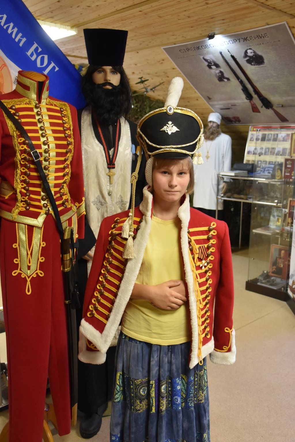 В рамках интерактивной экскурсии по приходскому музею, знакомясь с огромной ролью Православной Церкви в истории нашего Отечества, девочки смогли примерить форму разных исторических периодов, рассмотреть и потрогать макеты наград и оружия. Также гости в сопровождении священника посещали Никольский храм, знакомились с его святынями, фресками и интересными фактами его древней истории.