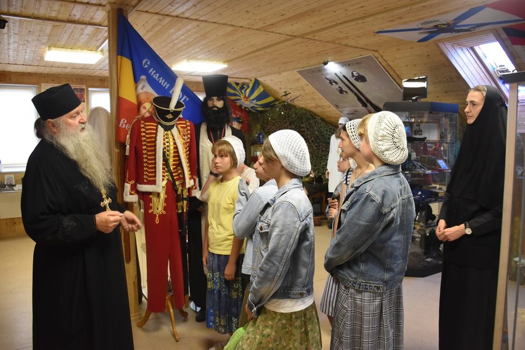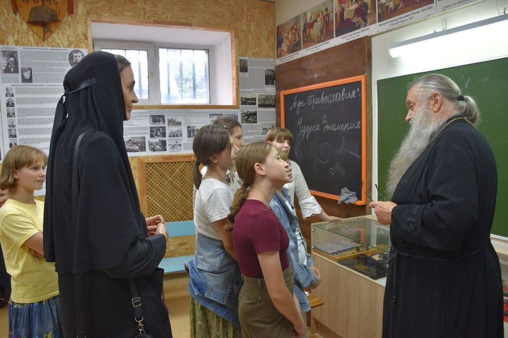 Настоятель Никольского храма с.Лямцино протоиерей Александр Трушин встретил дорогих гостей и провел для девочек экскурсию по храму и приходскому музею «Союз во имя жизни. Церковь и Армия».