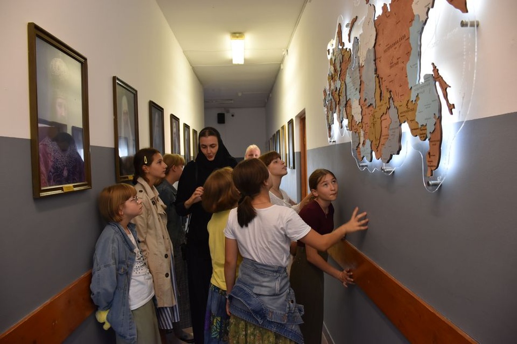 После общей трапезы, экскурсанты в сопровождении отца Александра, посетили Православную классическую гимназию им.прп. Серафима Саровского г.Домодедово, где с большим воодушевлением побывали в гимназическом музее «Истории Просвещения и Образования», ново отремонтированные учебные классы и увидели, как проходит подготовка к новому учебному году.