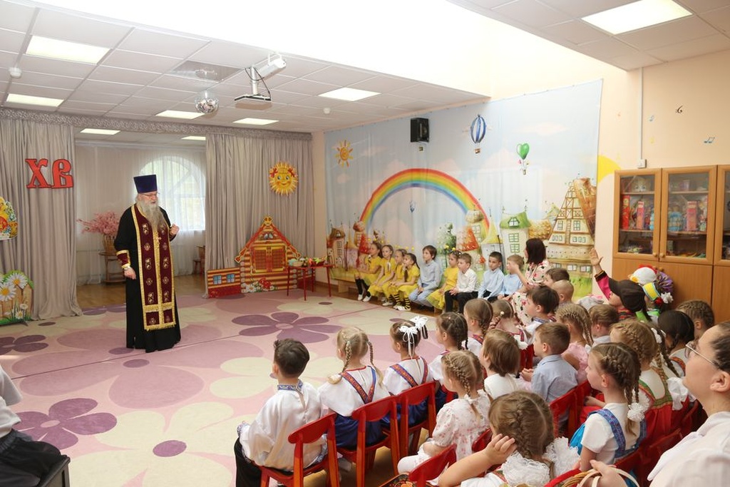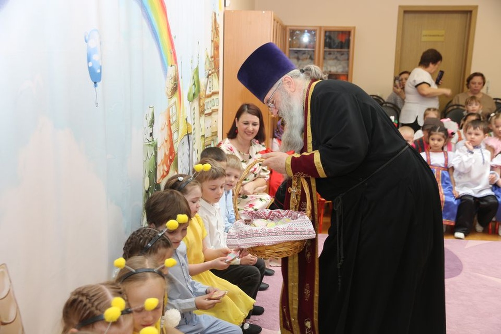 23 апреля, в рамках епархиального проекта «Добрый сад», в Детском саду «Ромашка» (Востряковский лицей №1, здание «Ромашка») мкрн.Востряково прошел традиционный Пасхальный праздник, участниками которого стали настоятель Никольского храма с.Лямцино протоиерей Александр Трушин, педагоги, родители и воспитанники детского сада.