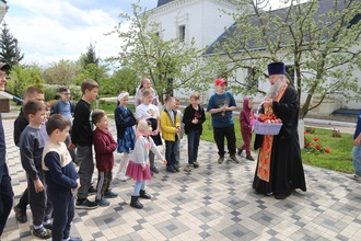 Настоятель храма протоиерей Александр Трушин поздравил всех со Светлым Христовым Воскресением и пожелал нести пасхальную радость своим ближним. В рамках праздника ребята вместе с родителями отгадывали загадки, водили хороводы и приняли самое активное участие в играх и эстафетах.