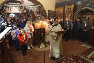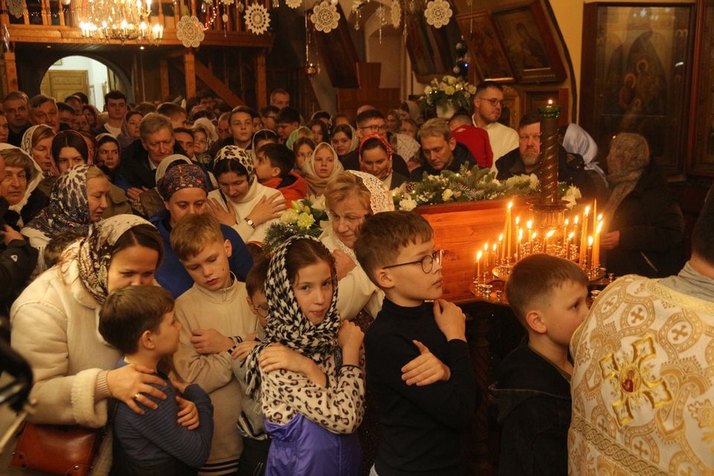 Праздничная ночная Рождественская Божественная Литургия в Никольском храме села Лямцино