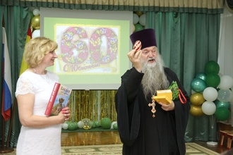 Протоиерей Александр Трушин был отмечен благодарственной грамотой за двадцатипятилетнее плодотворное соработничество и духовное окормление Детского сада «Березка». В приветственном слове отец Александр поздравил воспитателей, отметил какие прекрасные плоды дает многолетнее сотрудничество в деле духовно-нравственного воспитания и образования детей и передал в дар детскому саду подарочное издание детской Библии и пасхальное яйцо, как символ пасхальной радости.