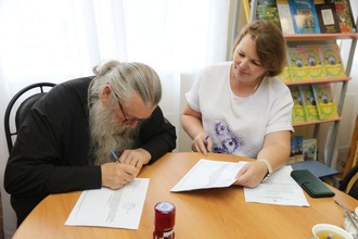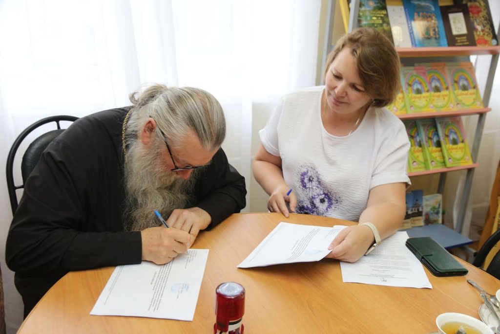 За круглым столом, в теплой дружеской обстановке был подготовлен и подписан план совместной работы на новый учебный год. Также в рамках первой беседы отец Александр рассказал о сотворении мира и человека, о Божием промысле и свободе воли каждого.
